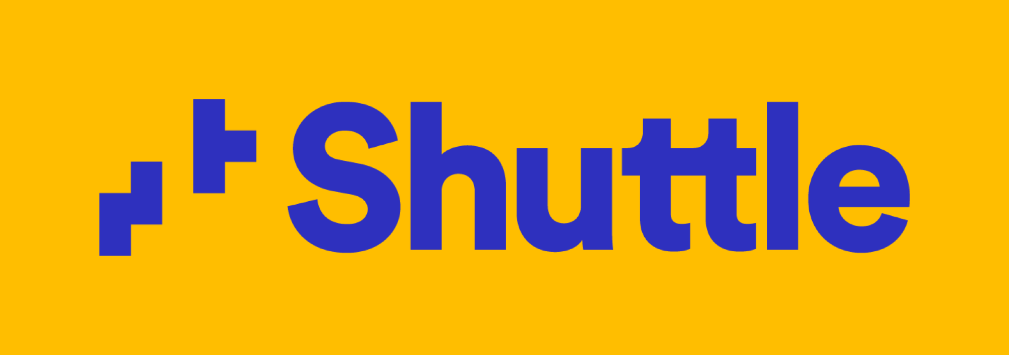 Shuttle Logo Blue on Yellow - Logo with blue on yellow background